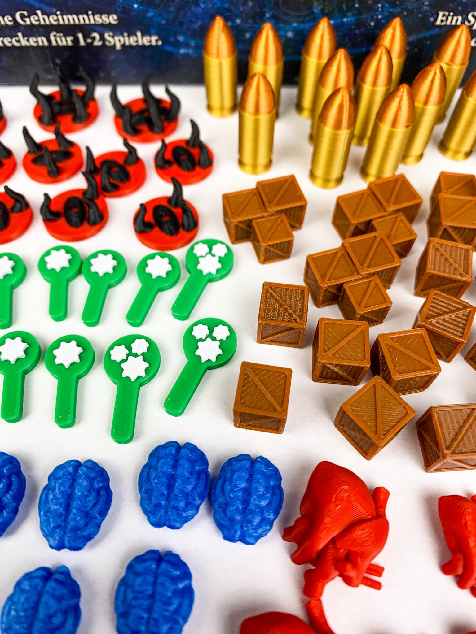 Verleiht eurem Spieltisch das gewisse Extra und hebt euer Arkham Horror LCG-Erlebnis auf ein neues Niveau! Mit diesen hochwertigen 3D Upgrade Token behaltet ihr jederzeit den Überblick über Munition, Ressourcen, Hinweise, Verderben, Horror und Schaden – alles stilvoll gestaltet und perfekt ins Spielgeschehen integriert.