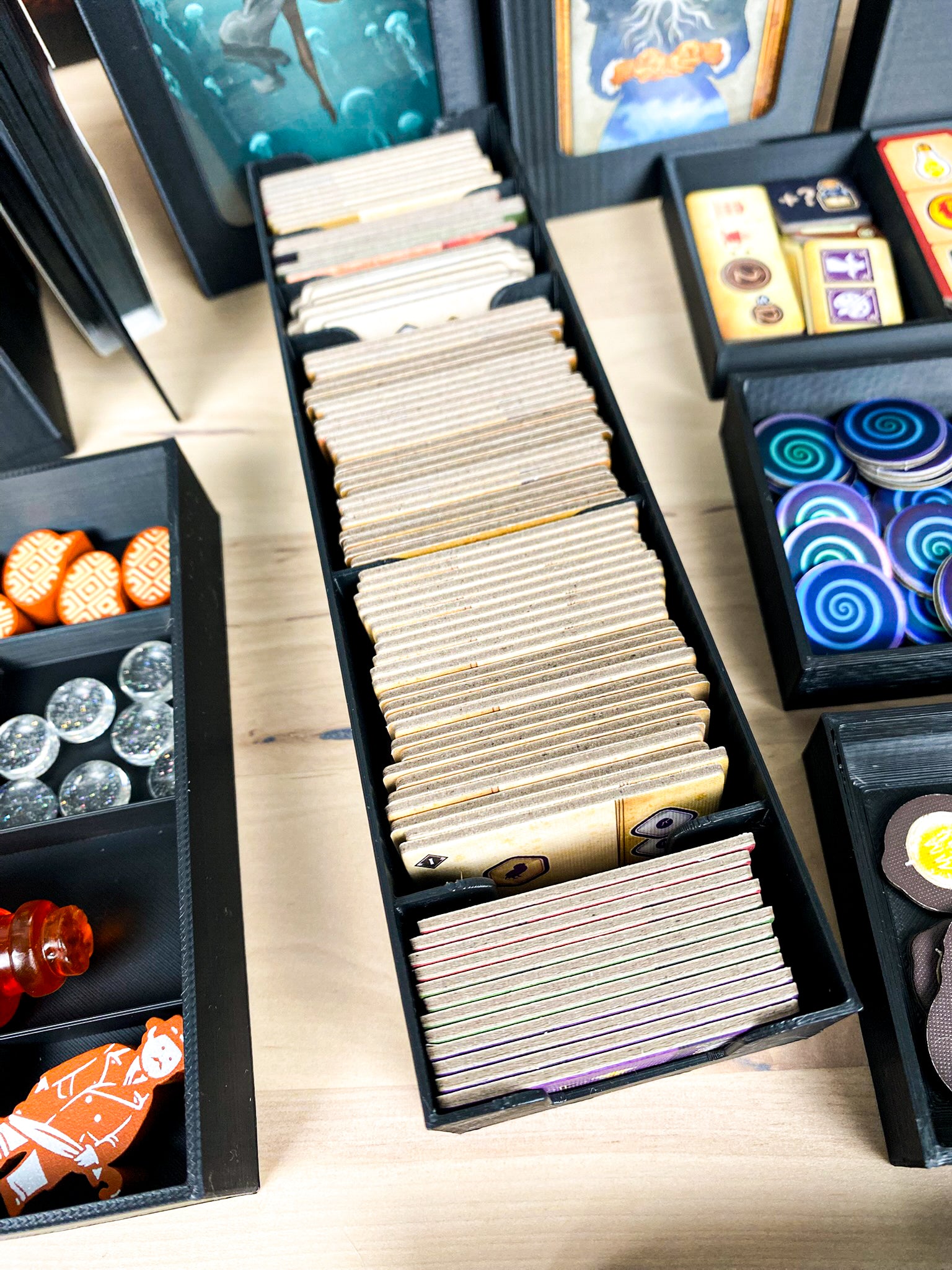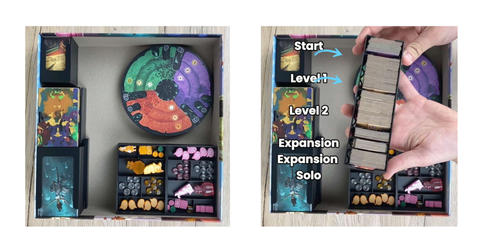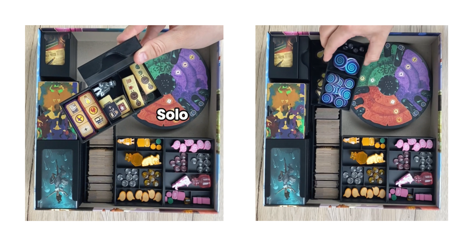 Dieser Einsatz ist speziell entworfen, um alle Komponenten sicher und organisiert unterzubringen. Kein Chaos mehr in der Spielschachtel – jedes Plättchen, jede Karte und jeder Spielstein findet seinen perfekten Platz. Dank der cleveren Fächer und leicht zugänglichen Ablagen sparst du Zeit beim Aufbau und kannst direkt ins Spiel eintauchen.