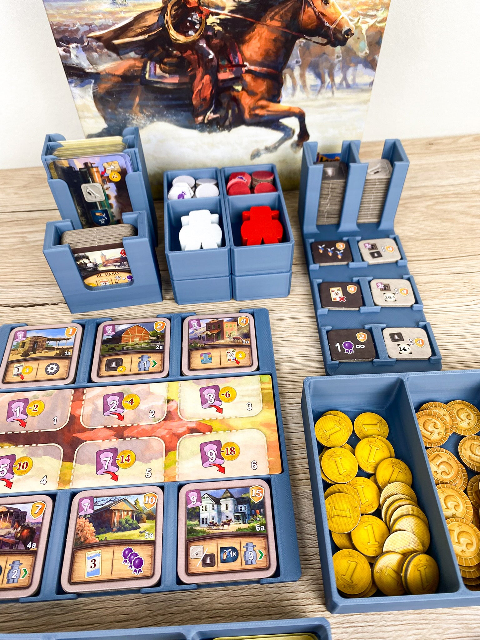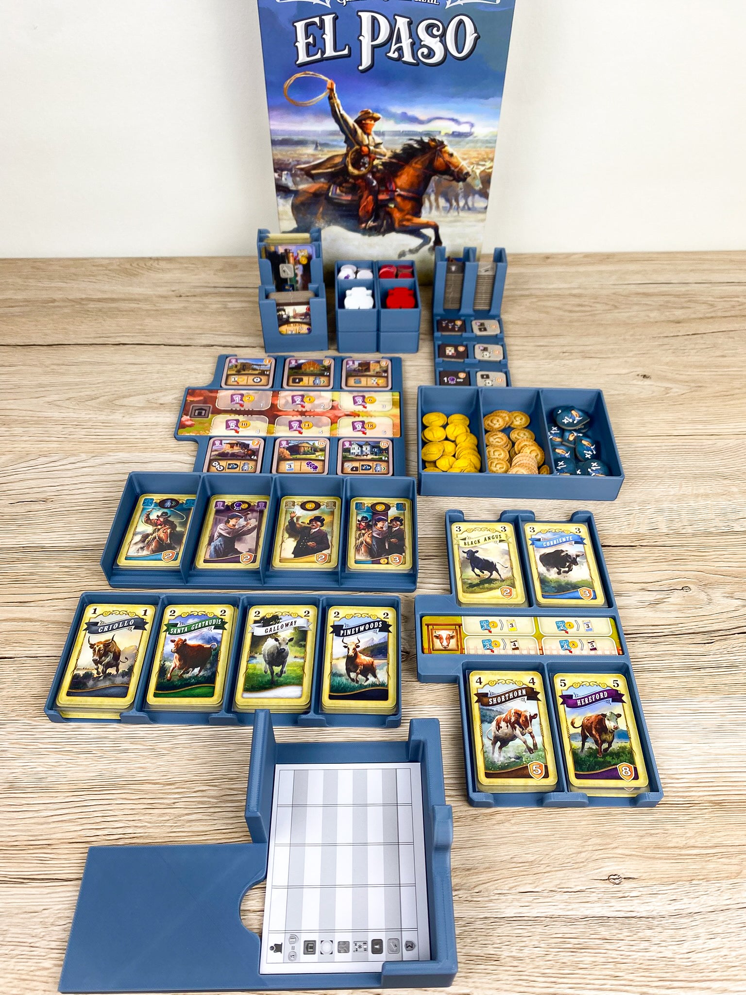 Mach Schluss mit dem nervigen Vorsortieren und dem wilden Materialchaos auf dem Tisch – mit unserem maßgeschneiderten Insert für El Paso wird der Spielaufbau zum Kinderspiel! 🤠