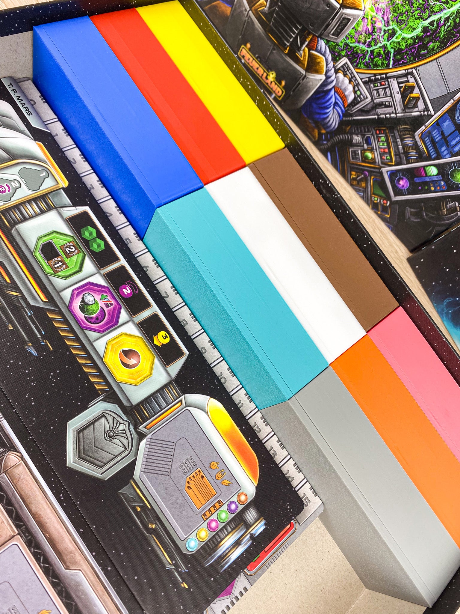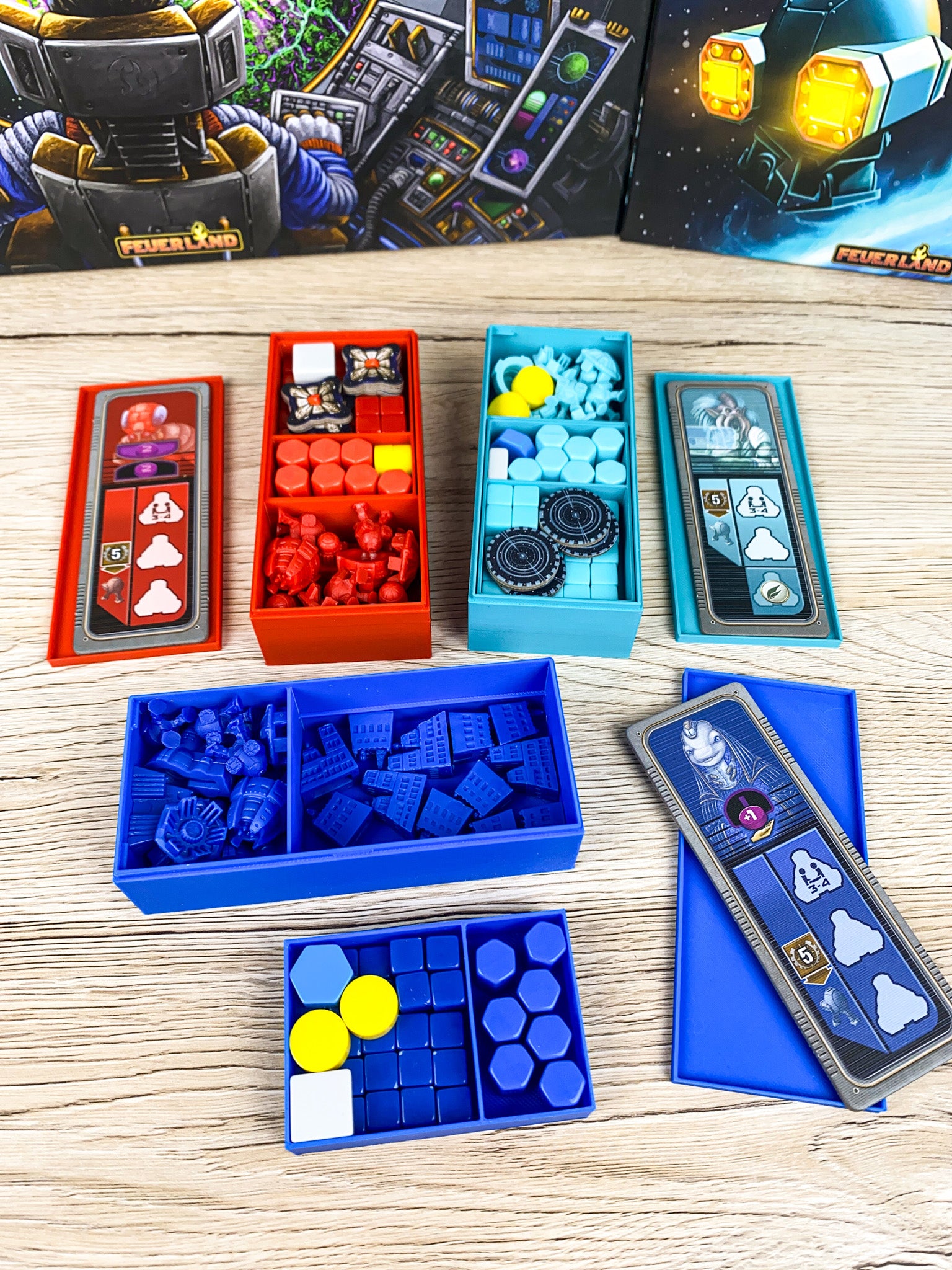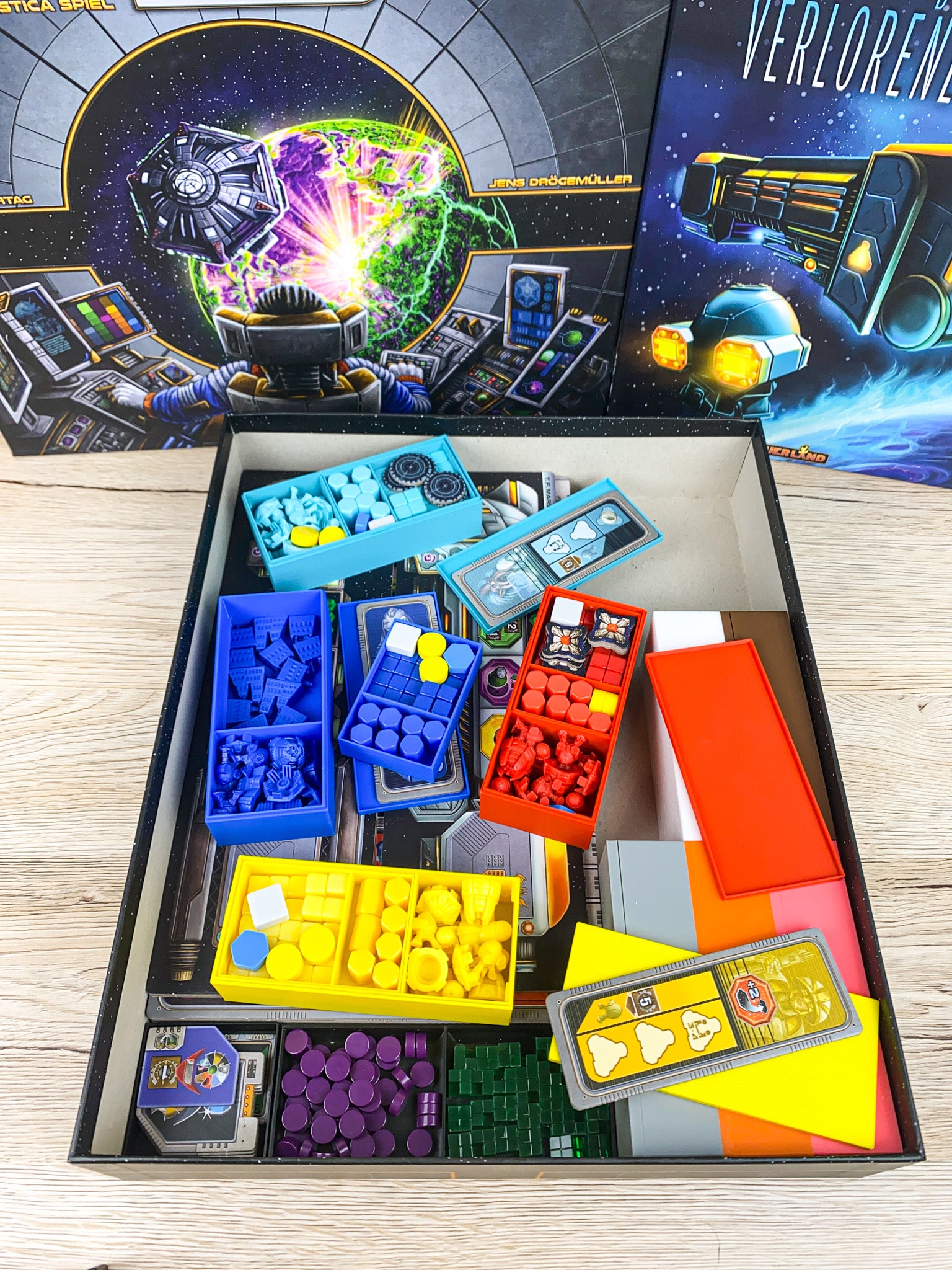 Für einen schnellen Spielstart sind Trays für Basis- und Ausbautechnologien sowie Allianzmarker direkt auslegbar – kein wiederholendes Sortieren mehr beim Aufbau. Zusätzlich enthalten sind praktische Vorratstrays mit den Ressourcen, die direkt auf den Tisch gelegt werden können.