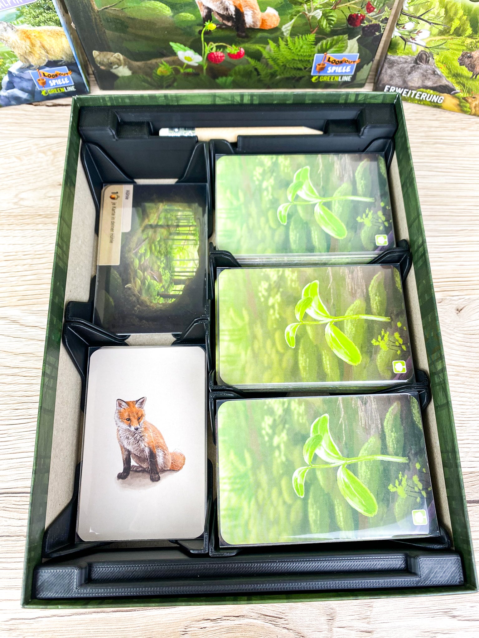 Erhältlich in tiefem Waldgrün oder elegantem Schwarz, fügt sich das Insert perfekt in die Optik des Spiels ein und macht deine Mischwald-Schachtel auch von innen zu einem Hingucker.