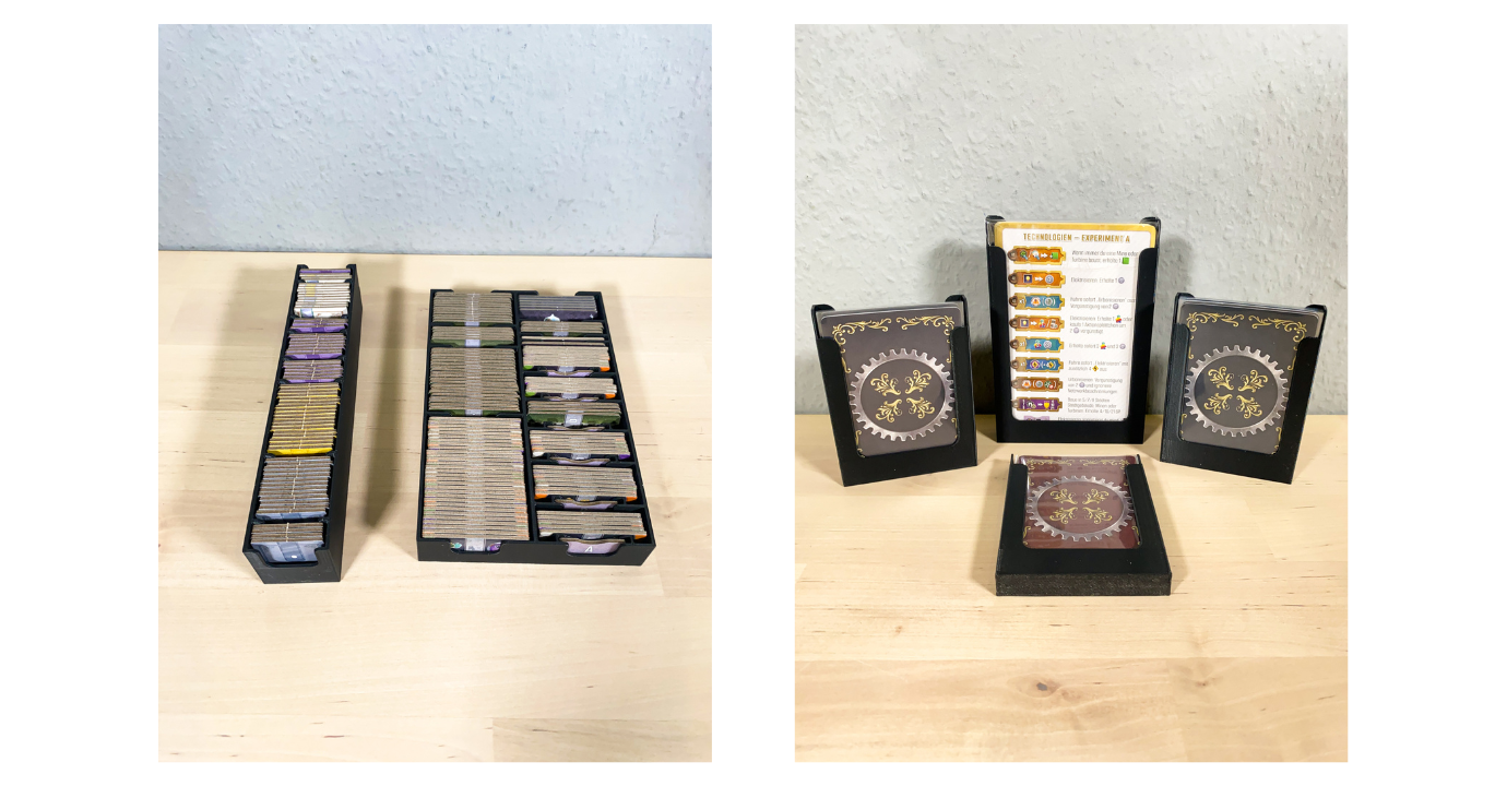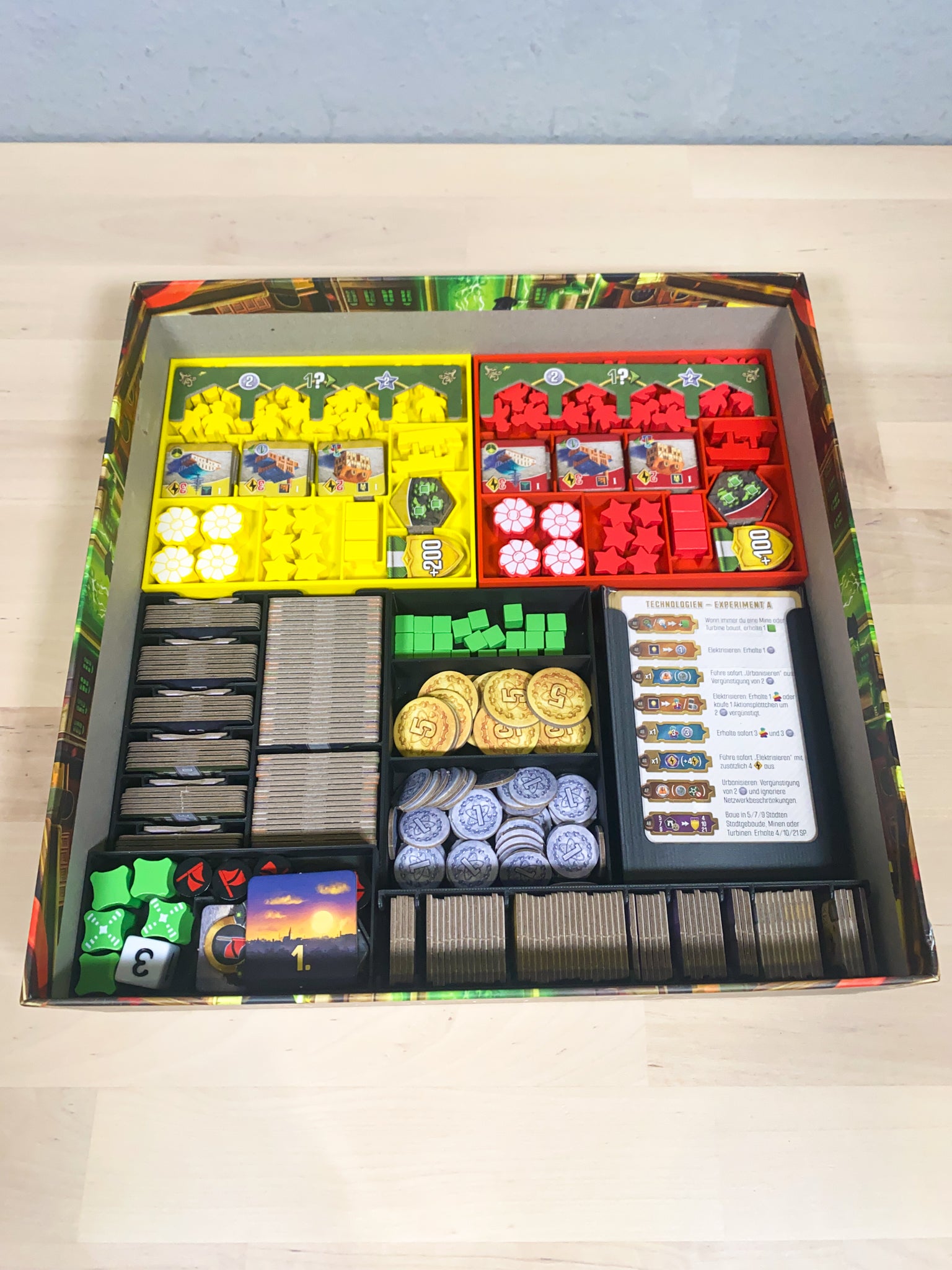 Dieses 3D-gedruckte Insert bringt Struktur und Komfort in dein Spiel Nukleum – und das nicht nur für das Basisspiel! Es ist vollständig kompatibel mit den Erweiterungen Der große Rat und Australien. Schluss mit dem Chaos in der Schachtel und langem Sortieren vor jeder Partie – mit diesem Insert bleibt alles an seinem Platz und du bist in wenigen Minuten startbereit.