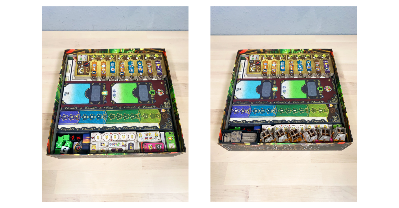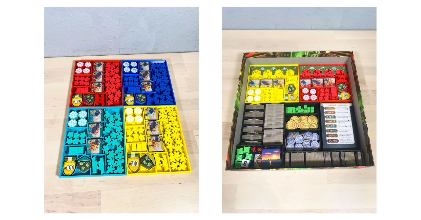 HINWEIS: Mit dem Insert passt nur eines der beiden Haupt-Spielfelder in die Verpackung.