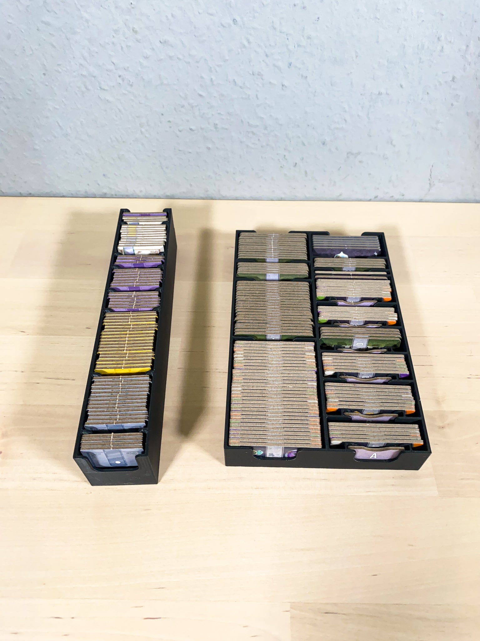 Das Insert wurde speziell entwickelt, um auch gesleevte Karten (getestet mit Mayday Premium 90 Mikrons) problemlos aufzunehmen, sodass deine wertvollen Spielkomponenten optimal geschützt bleiben. In schwarz und Radioaktiv-Grün vorhanden.