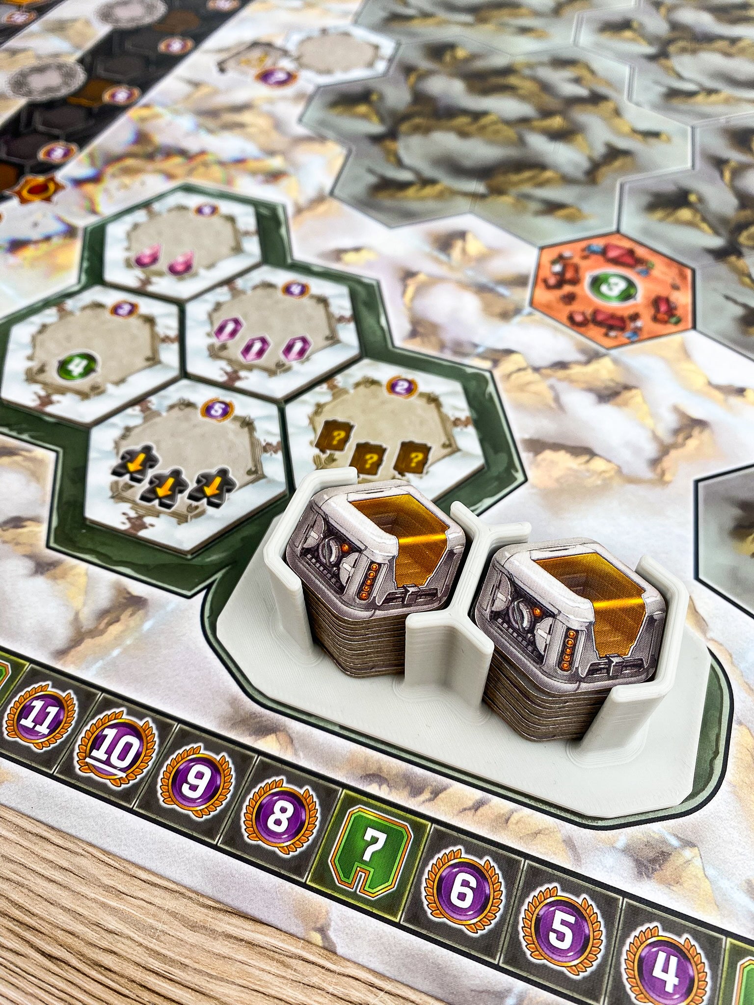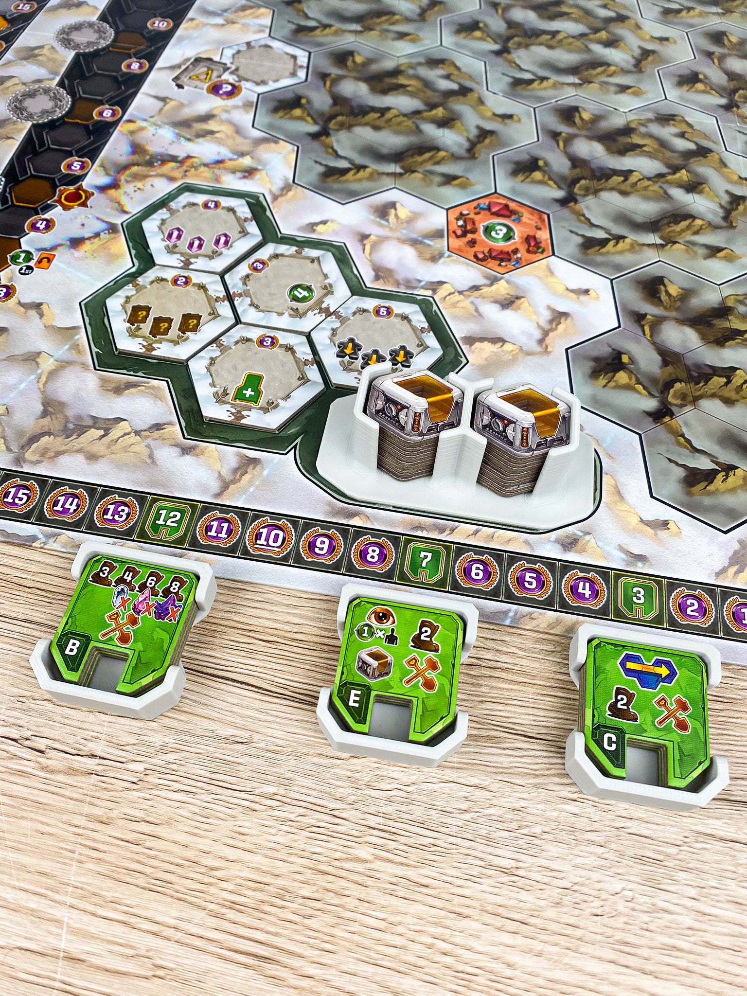 Jeder Spieler bekommt ein eigenes Player Tray mit komplett sortiertem Spielermaterial. So musst du nicht erst jedes einzelne Gebäude aus der Tüte raussuchen. Player Trays verteilen und direkt losstarten.
