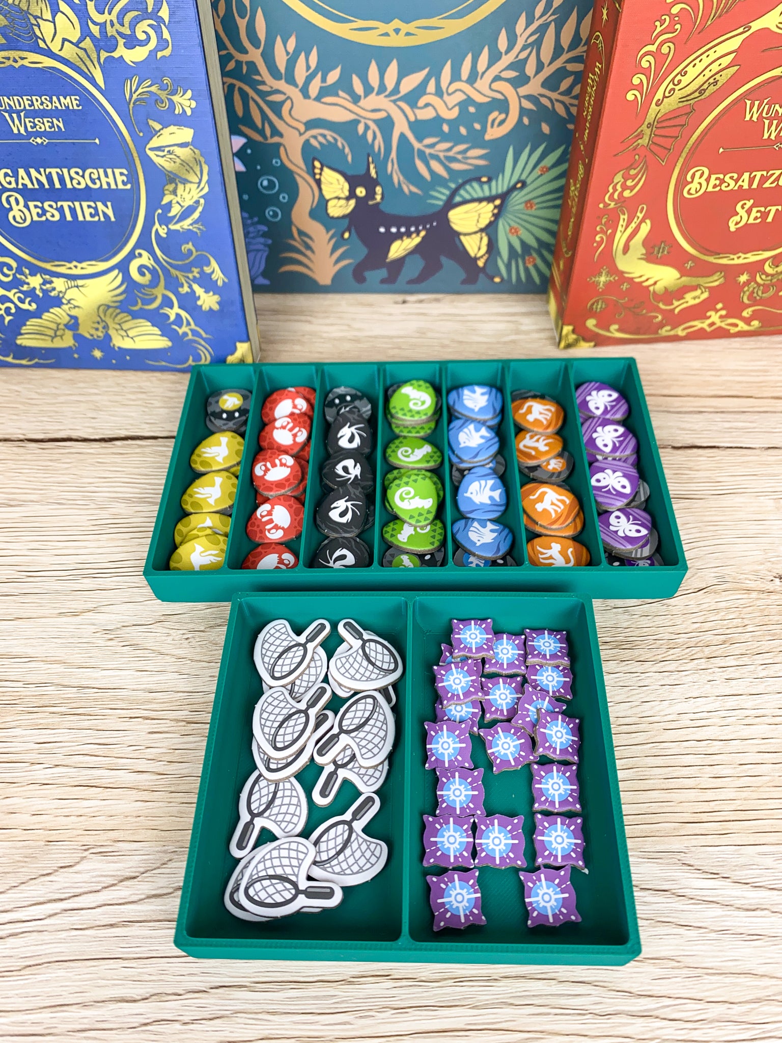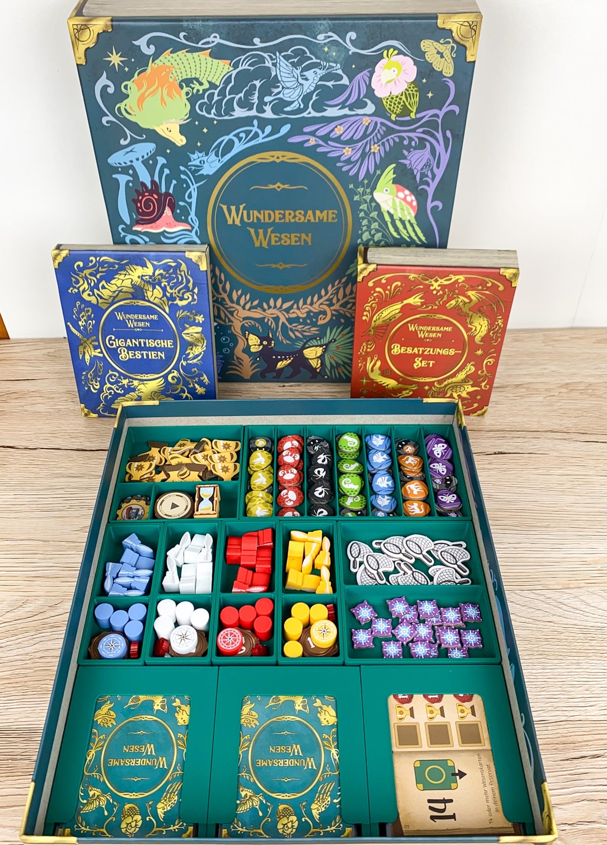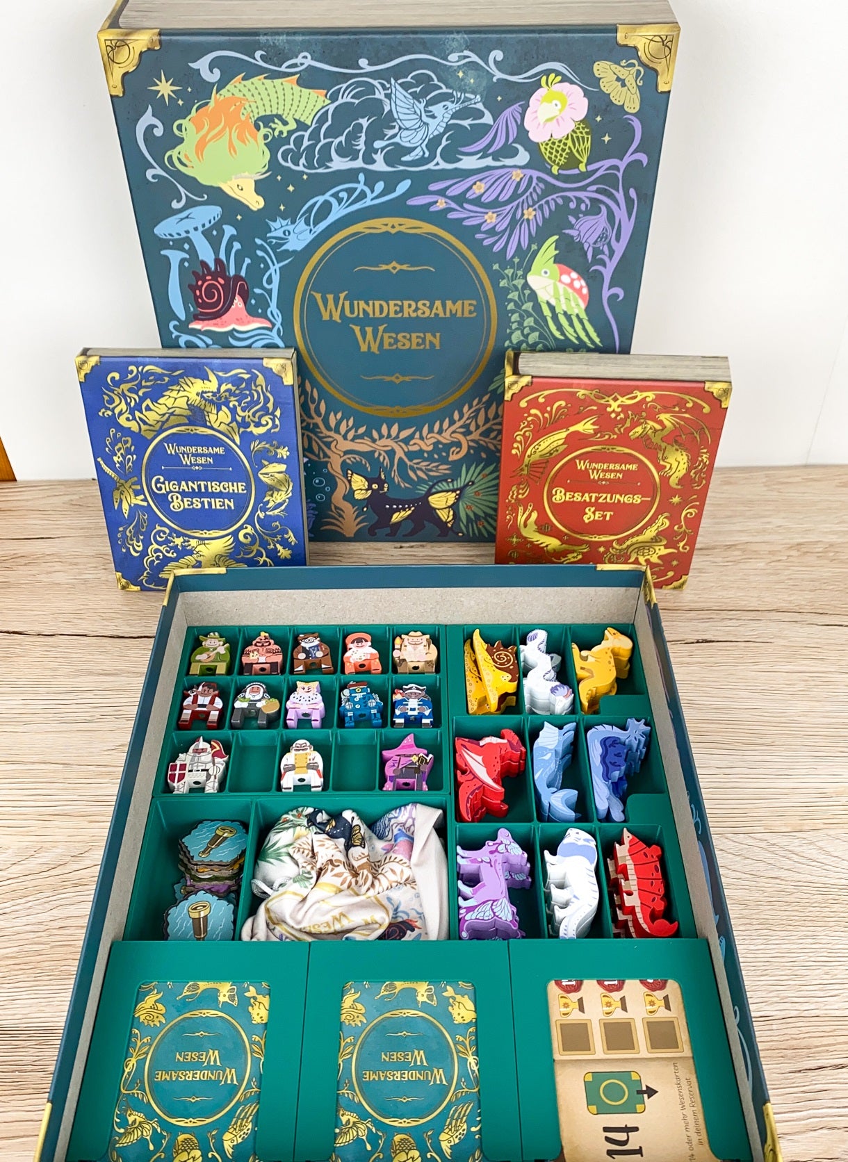 Entdeckt die Wundersamen Wesen – ohne euch mit herumfliegenden Spielteilen herumzuärgern! Dieses durchdachte Insert bringt nicht nur Ordnung in euer Abenteuer, sondern lässt euch im Handumdrehen losspielen.